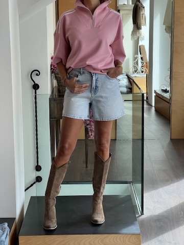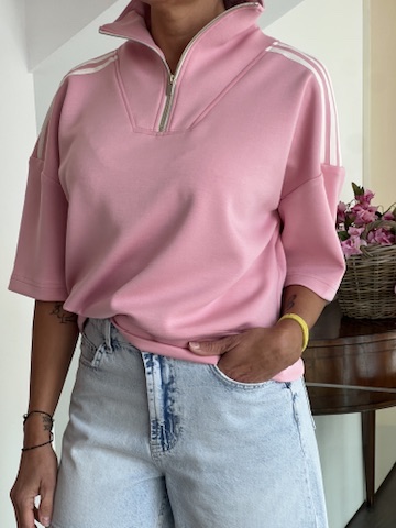 Felpa mezza zip rosa
